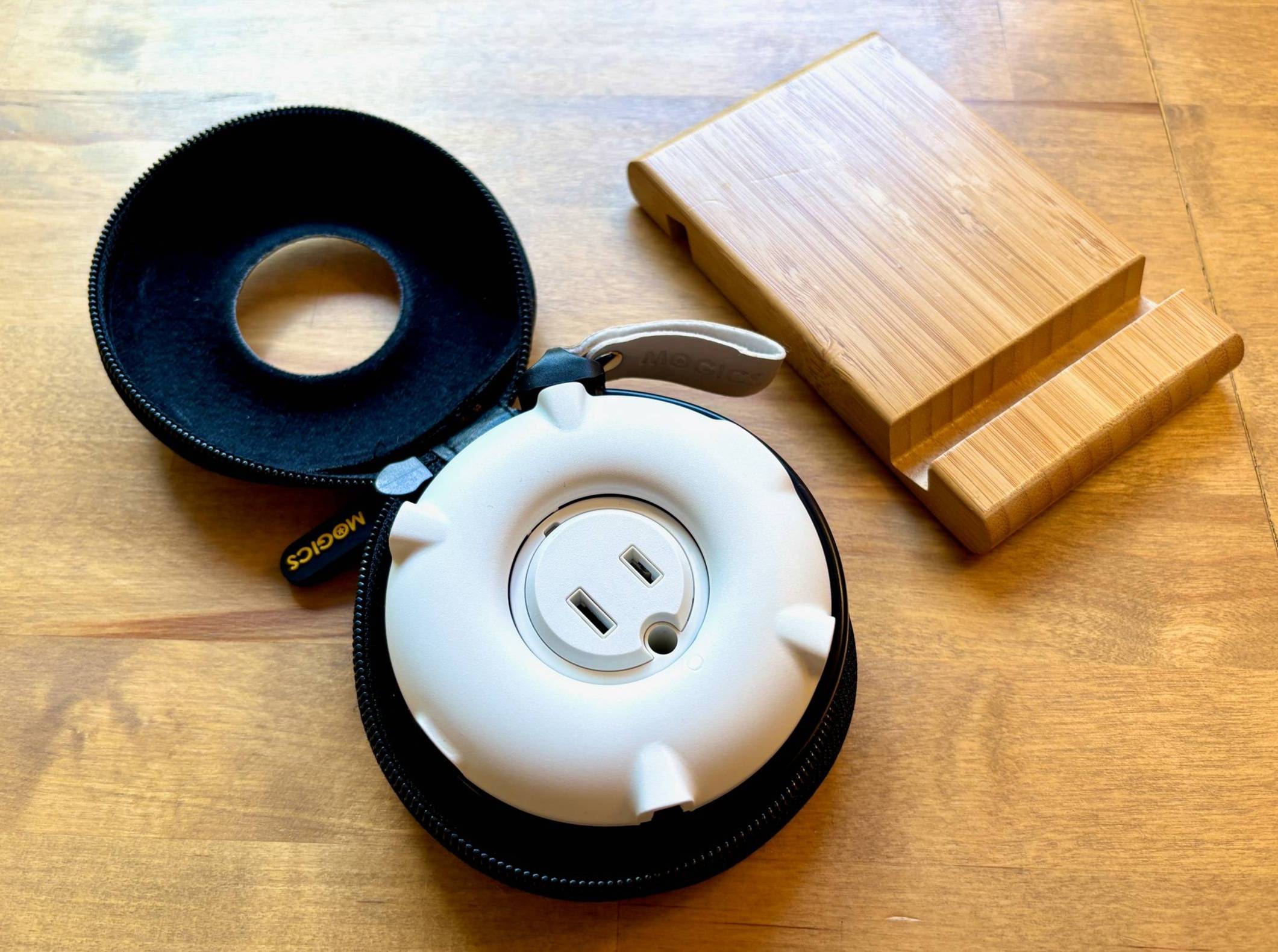 INTEL What’s In Your Travel Box? A fellow travel writer once said she never goes anywhere without her portable clothesline. I promptly bought one and used it for the first time to dry the soggy American one dollar bills that were left in the pocket of my swimtrunks. So handy! My MOGICS bagel is a universal travel power strip that has been all over the world with me, as has my bamboo IKEA BERGENES phone and tablet stand. It’s only $3!